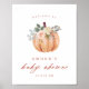 Un poster d'accueil baby shower automne avec citrouille en terre cuite aquarelle avec roses aquarelle et "baby shower" en police calligraphie moderne. Personnalisez avec les détails de la douche.