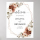 Elégante affiche d'accueil mariage à thème terreux en Terracotta Orange avec bouquet élégant de Blanc, Beige, Sage Terracotta couleur rose pivoines et eucalyptus feuille. Veuillez me contacter pour toute aide sur la personnalisation ou si vous avez besoin d'un autre produit avec ce design.