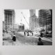 Enlèvement des débris à Third, Kearney and Market Streets, San Francisco, Californie, vers 1906. Résumé du LOC : Voir après le tremblement de terre et le feu, montrant la grue bougeant les décombres, pendant que plusieurs hommes et une femme passent.