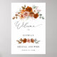 Élégante affiche de bienvenue pour une fête de mariage en terracotta et fleurs orange brûlé. Parfaite pour créer une entrée chaleureuse et romantique.