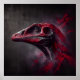 Portrait abstrait montrant la tête d'un dinosaure disparu. Peinte dans un style artistique avec des couleurs rouge et fusain, cette oeuvre captivante se déroule contre un arrière - plan sombre et ombragé. Découvrez la beauté dans les échos mystérieux du passé dans cette pièce très captivante.