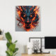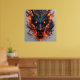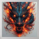 Une tête de dragon époustouflante, avec des écailles bleues vibrantes, des yeux orange vifs et des accents de feu, met en valeur l'intensité et le mystère d'une bête mythique.