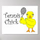 Le poussin de tennis en texte bouclé avec un mignon poussin tenant une raquette de tennis et le ballon est un drôle de design cadeau pour les instructeurs de tennis et les joueurs.