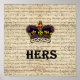 Un texte amusant "sien" avec une illustration de couronne violette sur un arrière - plan manuscrit vintage.