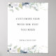 Vous avez besoin d'une certaine formulation dans un signe qui n'est pas disponible dans notre collection? , pas de soucis, avec ce signe vous avez la possibilité d'ajouter tout message que vous aimez en fonction de vos besoins. Vous pouvez même sélectionner "customiser plus loin" et sélectionner différents styles de police de texte, position, couleur et taille. Cliquez sur le texte et choisissez dans le menu à droite. Cliquez sur "fait" en haut du coin inférieur une fois terminé. La taille 8" x 10" est simple et par exemple, signe disponible dans une variété de tailles. Design avec une belle aquarelle verte et florale encadrant votre texte dans un magnifique mélange de tons blanc, bleu et vert. Une partie de notre collection "Elegant Bliss" avec une variété de produits mariages et de coordination d'événements disponibles, y compris l'ensemble de la signalisation d'événement.