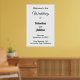 Bienvenue à vos invités avec ces textes noirs simples sur une affiche arrière - plan blanche solide en forme de rectangle de format portrait, un design simple pour les couples ou les hôtes qui préfèrent les textes simples sans rien dans l'arrière - plan. Les textes sont un style centré et une combinaison de calligraphie, de script et de polices sans serif. Les textes noirs contrastant avec l'arrière - plan blanc solide et les détails dans la police sans serif assurent lisibilité et clarté. Cette couleur noire et blanche classique et intemporelle peut également compléter différents thèmes ou schémas de couleurs mariages. Les contenus sont des textes de bienvenue, les noms de la mariée et du marié, les textes mariages, jour, date, lieu et lieu du mariage. Veuillez vérifier l'apparence après avoir tapé des textes. Si l'apparence vous plaît, vous pouvez passer votre commande maintenant. Si vous avez besoin de redimensionner et repositionner les textes pour les mettre sur cette affiche ou sur la taille que vous choisirez, s'il vous plaît ajuster dans l'outil de conception. Vous pouvez également modifier le style de police, la couleur de police et la couleur arrière - plan dans l'outil de conception. Félicitations à votre fiançailles ! Je vous souhaite une vie remplie d'amour et de bonheur.