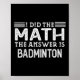 Affiche The Answer Is Badminton Funny Math Teacher Student