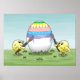 The two yellow chickens paint a beautiful Easter egg for the egg hunt.