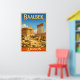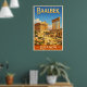 This stylish travel poster depicts the Temple of Jupiter and the Temple of Bacchus, two of the main drawcards at this amazing location.