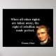 "Lorsque tous les autres droits sont supprimés, le droit de rébellion est rendu parfait". Thomas Paine cite.