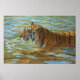 Affiche Tigre Baignade Grosse Chat Peinture Acrylique