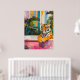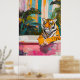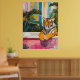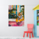 Découvrez un tableau minimaliste captivant d'un tigre en vous relaxant dans une baignoire, dans un décor de jardin tropical animé. Cette affiche à grande échelle présente des couleurs audacieuses, des éléments graphiques et des lignes expressives, créant ainsi une pièce murale unique et sophistiquée.