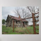 Ravaged by time and weather a small home is just a whisper of itself. Le vieux camping s'est retrouvé face à face avec des rideaux et des roses. Country setting in the startings of spring with the vibrant green grass and barren trees before they awaken with leaves. Surrounded by a barbwire and steel fence. Tu es à overcast day repeating the grays the building now wears.