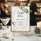 À la santé d'un peu de plaisir "Tini" ! Élevez votre prochaine célébration avec notre signalétique de cocktails signature Martini Soirée, où la sophistication classique rencontre la gaieté moderne. Parfaitement organisée pour les anniversaires marquants (comme les 30 ans !), les fêtes de fiançailles ou une "Soirée filles" chic, cette création donne le ton pour une soirée de verre frais et de compagnie chaleureuse. Le design présente une branche d'olive illustrée à la main et un martini à l'aquarelle, mélangeant des textures organiques avec une ambiance de fête. Le cadre géométrique doré saisissant et les accents de confettis scintillants offrent une sensation de luxe qui ressort sur le fond blanc épuré. Personnalisez facilement la création avec vos propres cocktails signature. Que vous organisiez votre événement dans un lounge local ou votre propre "Bar à Martini" à domicile