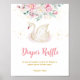 Affiche de Tirage de Couches pour Baby Shower Princesse Cygne Aquarelle Rose. Articles assortis disponibles.