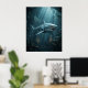 Fast and ruthless, this titanium shark artwork showcases reinforced alloy plating, streamlined fins, metallic teeth, glowing sensor eyes, and sleek marine engineering. Gliding through a flooded engine room filled with submerged turbines, pipes, chains, drifting debris, and shafts of light, the shark delivers cinematic danger and futuristic style. Ideal for gaming rooms, offices, coastal spaces, and modern interiors. A premium design for lovers of sharks, sci-fi décor, and powerful aquatic machine imagery.