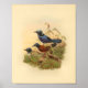 1878 Illustration vintage de l'oiseau Todopsis de Bonaparte. Avec des plumes bleues, violettes et marron posées sur les rochers et le sol.