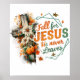 Design paisible et coloré avec une scène automne/automne avec citrouilles, croix en bois et fleurs d'automne. Le texte inspirant et coloré dit : "Tombe pour Jésus, il ne sera jamais feuille". Ce design est disponible sur une grande variété de produits.