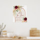 Accueillez les invités avec style avec ce panneau de bienvenue pour une fête de fiançailles "Fall in Love", avec des chrysanthèmes burgundy aquarelle, des roses blush, de la verdure d'eucalyptus, des plumes de faisan rustiques, de l'herbe de pampa séchée et des accents orange terracotta. Parfait pour une célébration automnale moderne, bohème et élégante, ce panneau comprend un texte personnalisable avec le nom de la future mariée et les détails de l'événement. Fait partie de notre collection "Fall in Love Bridal Shower" avec des invitations, des panneaux, des cadeaux et des décorations coordonnés pour créer un look saisonnier cohérent.