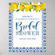 Une belle douche au citron nuptiale Welcome Poster aux citrons et carrelage italien bleu et blanc. Personnalisez-le pour votre douche nuptiale. Conçu pour vous par Blackberry Boulevard.