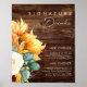 Ce poster audacieux de tournesols de campagne avec signature en bois est parfait pour votre mariage champêtre simple et classique dans une grange de jardin arrière en été. Le design présente un bouquet de tournesols jaunes dorés et orange rustiques aquarelles vintage, de verdure élégante et moderne de sauge verte et d'eucalyptus, ainsi qu'une rose ivoire blanche. Le design est idéal pour un mariage automnal décontracté et minimaliste en plein air. N'hésitez pas à nous contacter si vous avez des questions concernant le design du produit ; à votre santé !