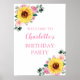 Cette affiche de fête d'anniversaire présente des tournesols d'aquarelle modernes, des fleurs roses et du feuillage d'eucalyptus. Personnalisez-le avec un nom et une date. Cette affiche fait partie d'une collection présentant une gamme complète de produits de fête d'anniversaire assortis.
