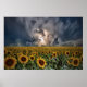Un champ de tournesols jaunes dans une tempête de foudre estivale.
