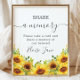 Honorez la mémoire d'un être cher avec cet élégant panneau de table "Partagez un souvenir" à motif Tournesols.