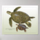 Cette illustration détaillée d'une tortue verte adulte et juvénile est de l'artiste Dawn Witherington.