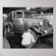 Réparation des camions du gouvernement. La photo montre un homme qui change de pneus sur un camion américain du Département du Commerce Coast et Geodetic Survey. Photo prise en 1937.