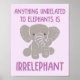 Aimez les éléphants ? Vous devrez alors convenir que tout ce qui n'a rien à voir avec les éléphants n'est pas pertinent. Avec son jeu amusant sur le message des mots et sa mignonne illustration d'éléphant de bande dessinée, cette affiche est parfaite pour les fans d'éléphants.