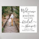 Bienvenue aux invités à une célébration élégante de shower de mariage avec un poster photo personnalisé élégant de 18"x24". L'image et tout le texte sont simples à personnaliser. Le thème de fête "brunch & bubbly" peut être facilement supprimé ou changé en une autre idée telle que backyard bliss, garden tea party, french boho chic, Miss to Mrs, Paris romance, etc. Le design moderne minimaliste noir et blanc présente une image de votre choix, une calligraphie de style manuscrit chic et une typographie vintage élégante. Ce panneau de bienvenue pour shower de mariage est un moyen élégant de partager une photo de fiançailles dans le cadre de la décoration de votre jour spécial de célébration. Félicitations à la mariée !