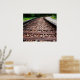 Poster des voies ferrées dans les bois, courbant vers la droite.