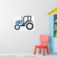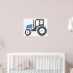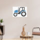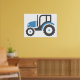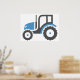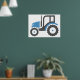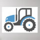 Un tracteur bleu gris comme celui que l'on trouve dans une ferme. Ce design semble vraiment efficace sur cette affiche