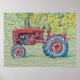 Vintage pays vieux rustique tracteur de ferme rouge dans un champ d'affiche murale d'herbe. Copyright de l'image Marg Seregelyi Photography.