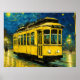 Affiche tramway jaune sur une nuit étoilée -Budapest
