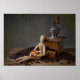 Still Life avec vieux broyeur de café et poupée articulée travaillant le moulin