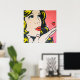 Une jolie jeune blonde fait un triste baiser au revoir. Impression d'une peinture pop art originale sur toile par www.jamieleeart.com