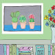 Affiche Trois cactus dans les pots, art mignon, naïf