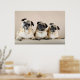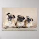 Trois Carlins se couchant côte à côte et inclinant la tête de la même façon.