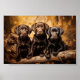 Trois chiots récupérateurs du labrador, Portrait noir et chocolat