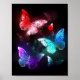 Affiche Trois papillons lumineux sur fond de nuit