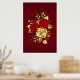La composition de deux roses rouges artistiquement peintes et d'un rose doré, décoré d'or, feuilles de bijoux sur arrière - plan texturé.
