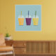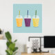 Trois smoothies dans des tasses très colorées et prêtes à boire. Ce design semble vraiment efficace sur ces Poster