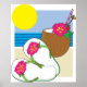 Affiche Tropical Beach Vacation Coconut Flowers Flip Flops
