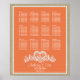 Coquillages et étoiles de mer carte des sièges à thème océanique en tangerine tropicale orange. Modifiez la couleur et les couleurs de police de l'arrière - plan pour qu'elles correspondent à votre mariage. Personnalisez avec votre propre liste d'invités et alignez-vous au besoin.