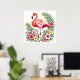 Affiche Tropical Watercolor Pink Flamingo Floral Hawaiian