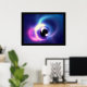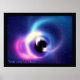 Image fractale multicolore qui suggère la chute de gaz chauffés dans un trou noir, superposée à un arrière - plan étoilé. Customisez en ajoutant votre propre texte.