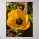 Une vue propre et rapprochée d'une tulipe jaune vibrante capturée à la lumière naturelle du soleil. L'image met en valeur une couleur riche, une texture de pétale douce et un détail botanique fin, ce qui la rend parfaitement adaptée à la décoration moderne, à la papeterie et aux créations inspirées de la nature.