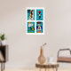Affiche Turquoise Czech Matchbox Labels Grid Print